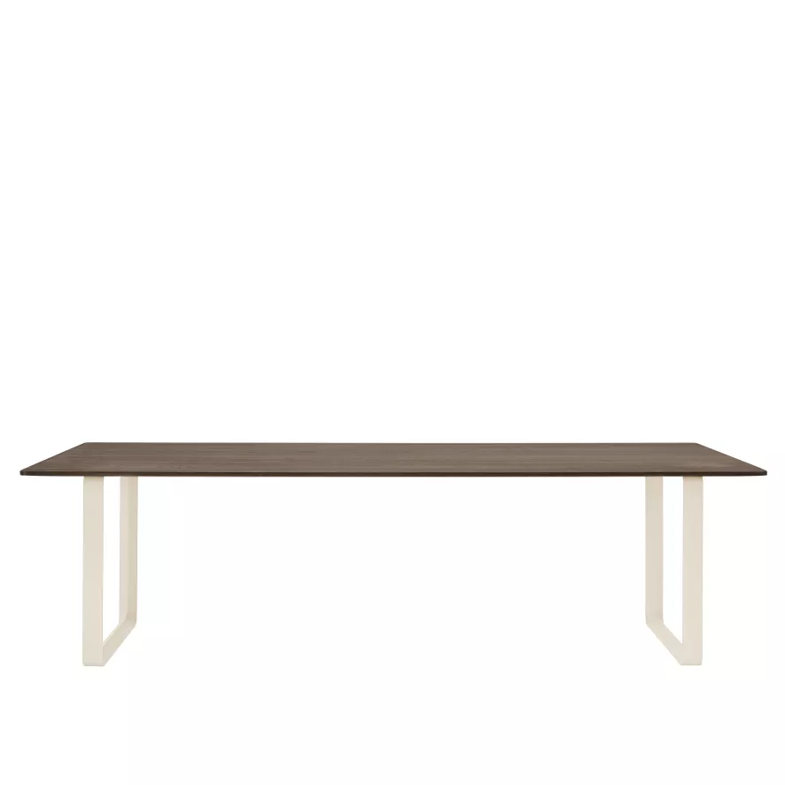 De 70/70 tafel 255×108 van Muuto heeft een breedte van 255 centimeter, een lengte van 108 centimeter en een hoogte van 73 centimeter. Deze tafel heeft een onderstel van aluminium dat afgewerkt is met een poedercoat. Het tafelblad is gemaakt van FSC-gecertificeerd, massief, gerookt eikenhout. Dit tafelblad mag niet langdurig worden blootgesteld aan direct zonlicht, hitte of een hoge luchtvochtigheid. Het houten blad dient met een zachte doek, in de richting van de houtnerven, schoongemaakt te worden. Om het eikenhouten tafelblad in optimale conditie te houden is het aan te raden het hout 2 tot 3 keer per jaar, zowel boven als onder, met een speciale olie voor eikenhout te behandelen. De 70/70 tafel 255×108 van Muuto is in verschillende uitvoeringen verkrijgbaar.