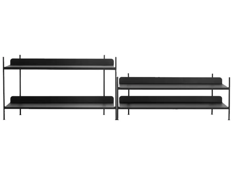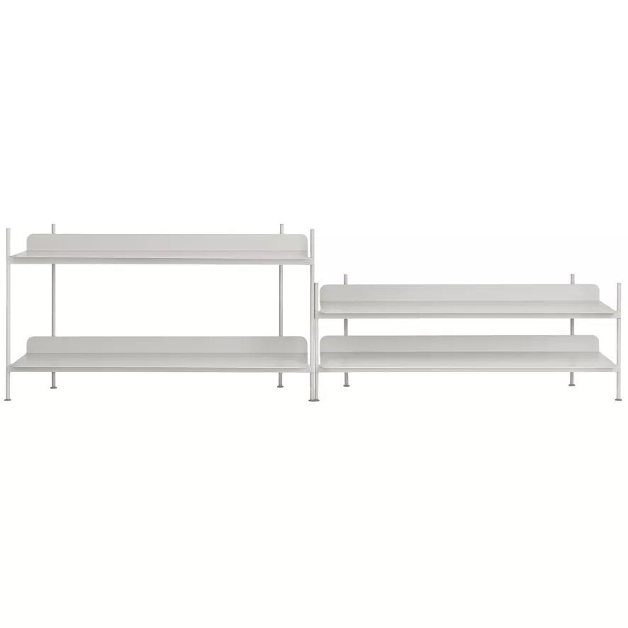 De Compile 5 kast van Muuto heeft een breedte van 244,5 centimeter, een hoogte van 67,5 centimeter en een diepte van 42 centimeter. De open kast is gemaakt van gepoedercoat staal. Naast de Compile 5 kast kun je nog kiezen uit 7 andere variaties.