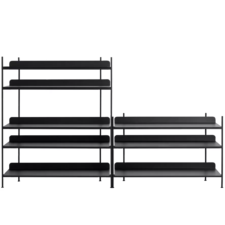 De Compile 7 kast van Muuto heeft een lengte van 244,5 centimeter, een hoogte van 151 centimeter en een diepte van 42 centimeter. De open kast is gemaakt van gepoedercoat staal. Naast de Compile 7 kast kun je nog kiezen uit 7 andere variaties.