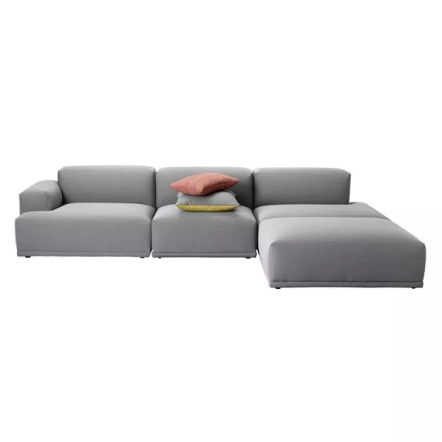 De Connect bank van Muuto is standaard leverbaar in drie textielen: Remix 123, Steelcut Trio 133 en Steelcut Trio 515. Andere textielen van Kvadrat zijn ook leverbaar op aanvraag.