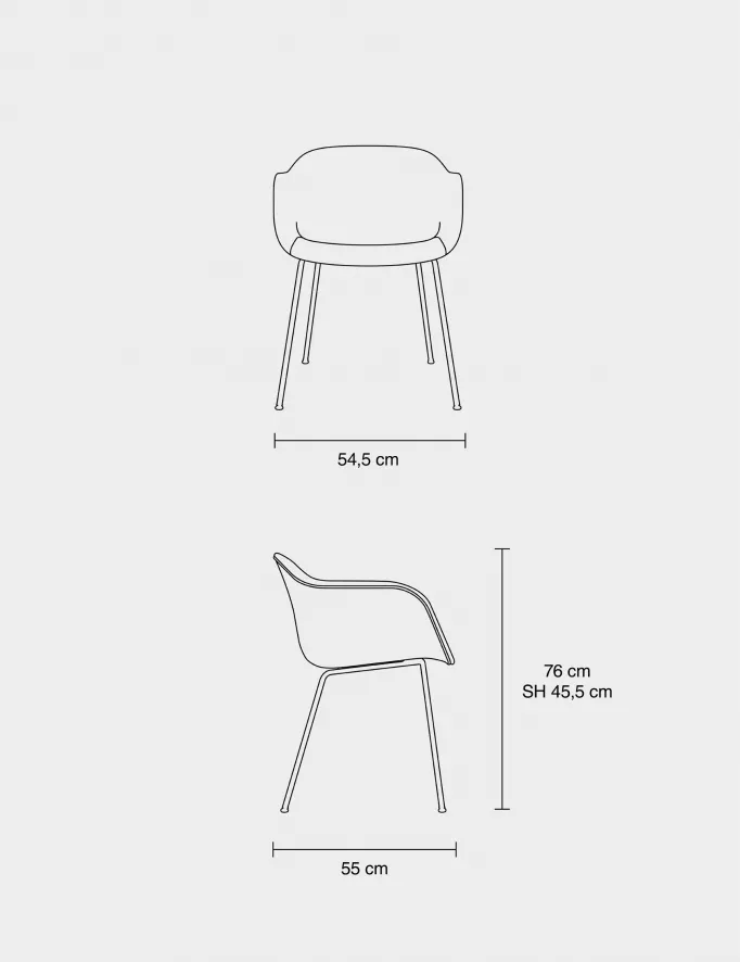 De Muuto Fiber Tube stoel heeft een breedte van 51 centimeter, een diepte van 58 centimeter en een hoogte van 76,5 centimeter. De zithoogte is 46 centimeter en de hoogte van de armleuningen is 68 centimeter. De zitting is gemaakt van een composiet van kunststof (75%) en houtvezel (25%). Het onderstel is gemaakt van gepoedercoat staal. Er zijn drie verschillende kleurvarianten beschikbaar. De stoel kan ook worden bekleed met stof of leder. Daarnaast is de stoel leverbaar met verschillende onderstellen: de Fiber Swivel stoel, Fiber Sled stoel en Fiber Wood stoel.