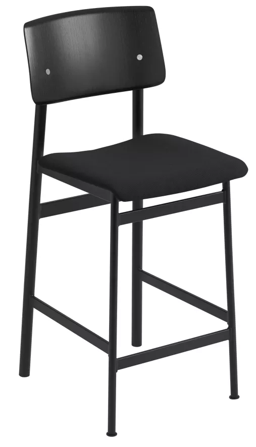 De Loft gestoffeerde barkruk 65cm van Muuto heeft een zithoogte van 65 centimeter, een totale hoogte van 98,5 centimeter en een breedte van 42,5 centimeter. De duurzame kruk heeft een frame van gepoedercoat staal en een zitting en een rugleuning van gelakt eikenfineer. Je kunt voor het stalen frame kiezen uit verschillende kleuren. Voor de bekleding heb je keuze uit verschillende materialen en kleuren. De Loft barkruk is ook met een zithoogte van 75 centimeter verkrijgbaar.