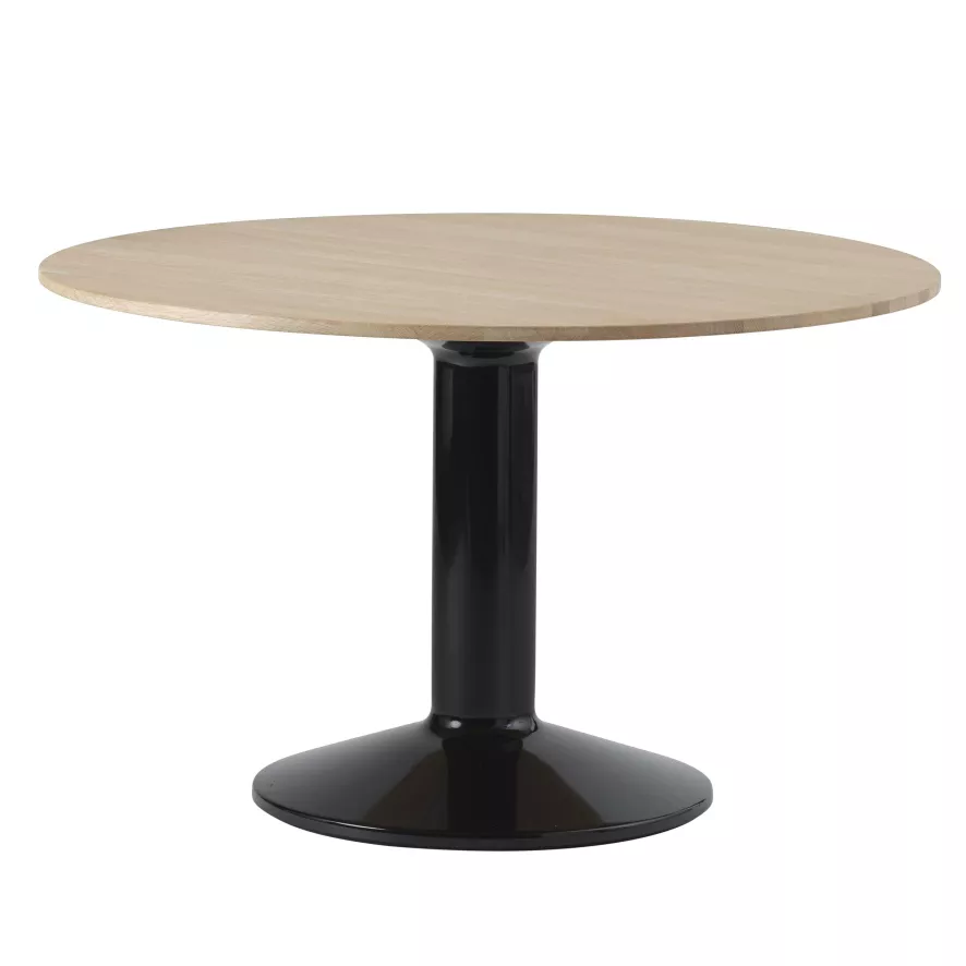 De Midst eettafel 120 van Muuto heeft een diameter van 120 centimeter en een hoogte van 73 centimeter. De tafel heeft een onderstel van staal en is met een poedercoat afgewerkt. Het tafelblad is verkrijgbaar in eikenhout en linoleum. Beide varianten zijn verkrijgbaar in diverse kleuren en afwerkingen. Deze eettafel is geschikt voor 4 tot 6 personen en mag alleen binnenshuis gebruikt worden. De Midst eettafel 120 van Muuto is in verschillende kleuren en formaten verkrijgbaar.