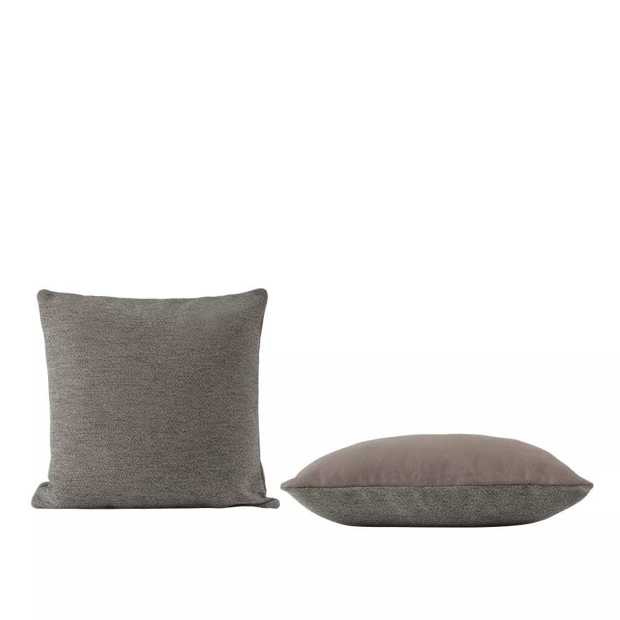 Het Mingle kussen 45×45 van Muuto heeft een breedte van 45 centimeter en een lengte van 45 centimeter. Dit kussen heeft een vulling van polyester, een binnenhoes die voor 55% uit polyester en voor 45% uit katoen bestaat en een sloop dat uit twee verschillende stoffen en kleuren bestaat. Voor dit kussensloop is er gekozen voor Textiles Ecriture en Hero stof van Kvadrat. Het buitenste kussensloop mag alleen professioneel gereinigd worden. De binnenhoes mag op 30 graden Celsius in de wasmachine gewassen worden en dient daarna aan de lucht gedroogd te worden. Het Mingle kussen 45×45 van Muuto is in verschillende kleuren en formaten verkrijgbaar.