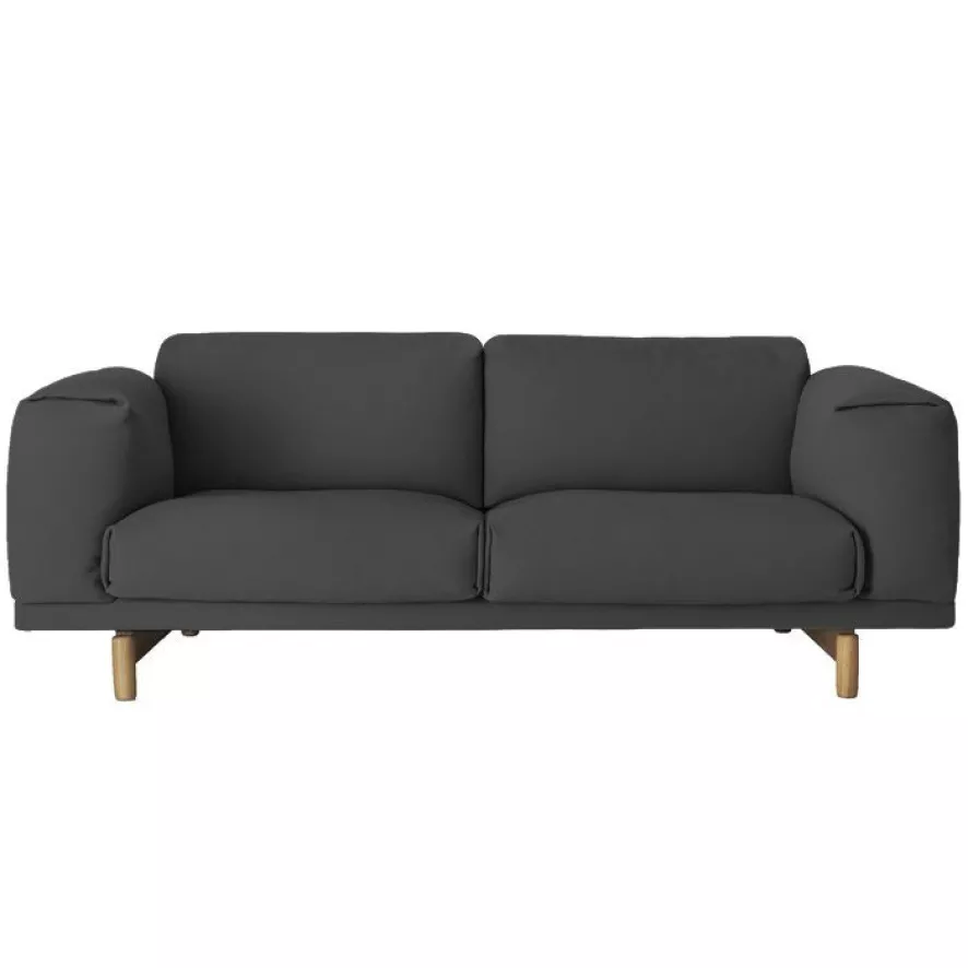 Andere textielen van Kvadrat zijn ook leverbaar op aanvraag. De Rest bank is leverbaar als tweezitter en als driezitter. De tweezitter heeft een breedte van 200 centimeter, een diepte van 92 centimeter en een hoogte van 72 centimeter. De driezitter heeft een breedte 260 centimeter, een diepte van 92 centimeter en een hoogte van 72 centimeter. Bij beide banken is de zithoogte 41 centimeter en de hoogte van de armleuningen is 63 centimeter. De bank staat op houten poten van naturel eiken of zwart gebeitst eiken.