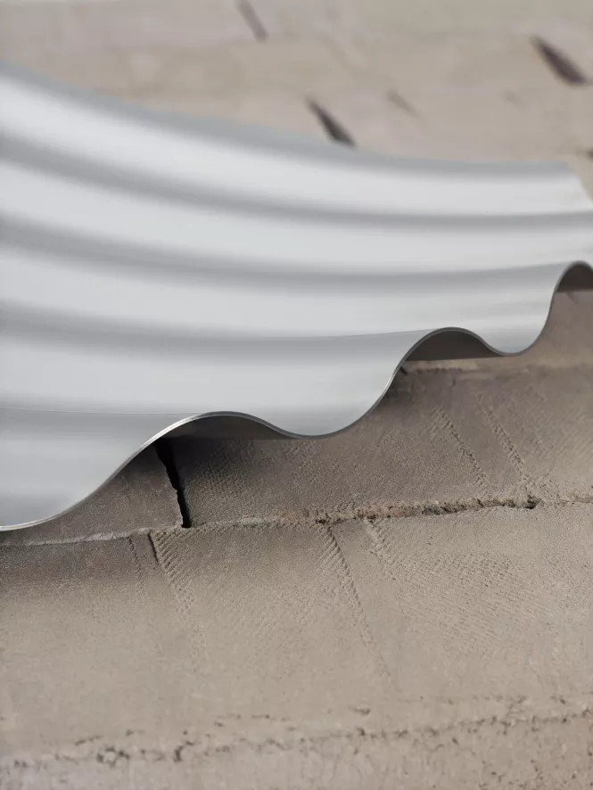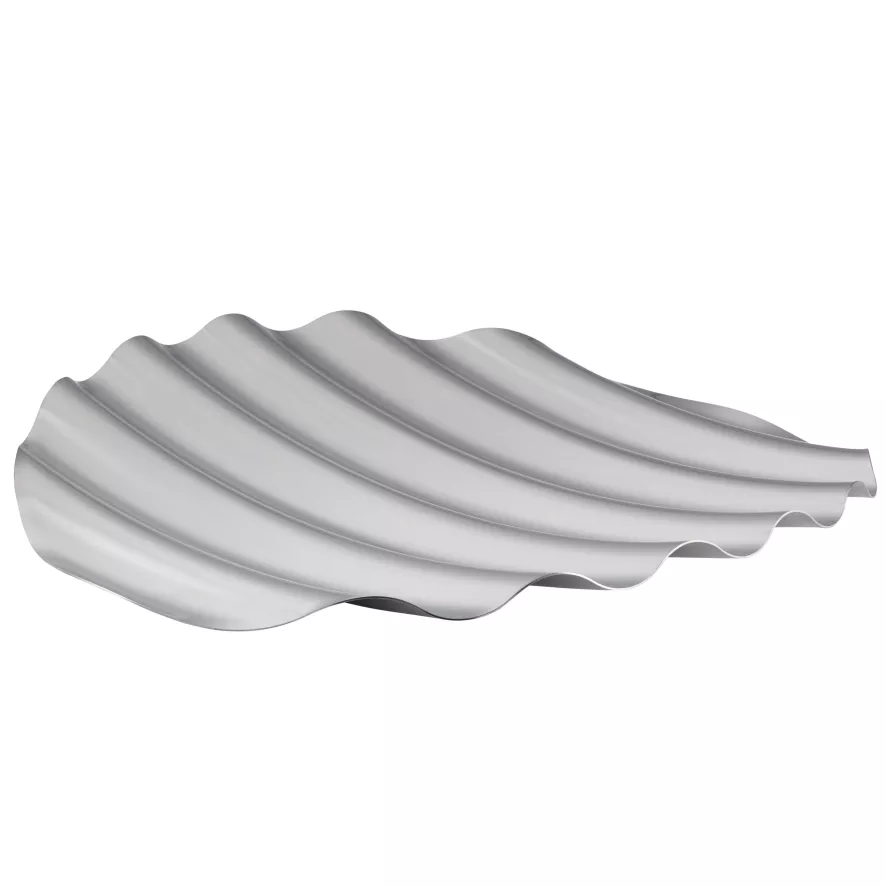 De Wave Tray schaal van Muuto is gemaakt van roestvrijstaal en heeft een golvende vorm.