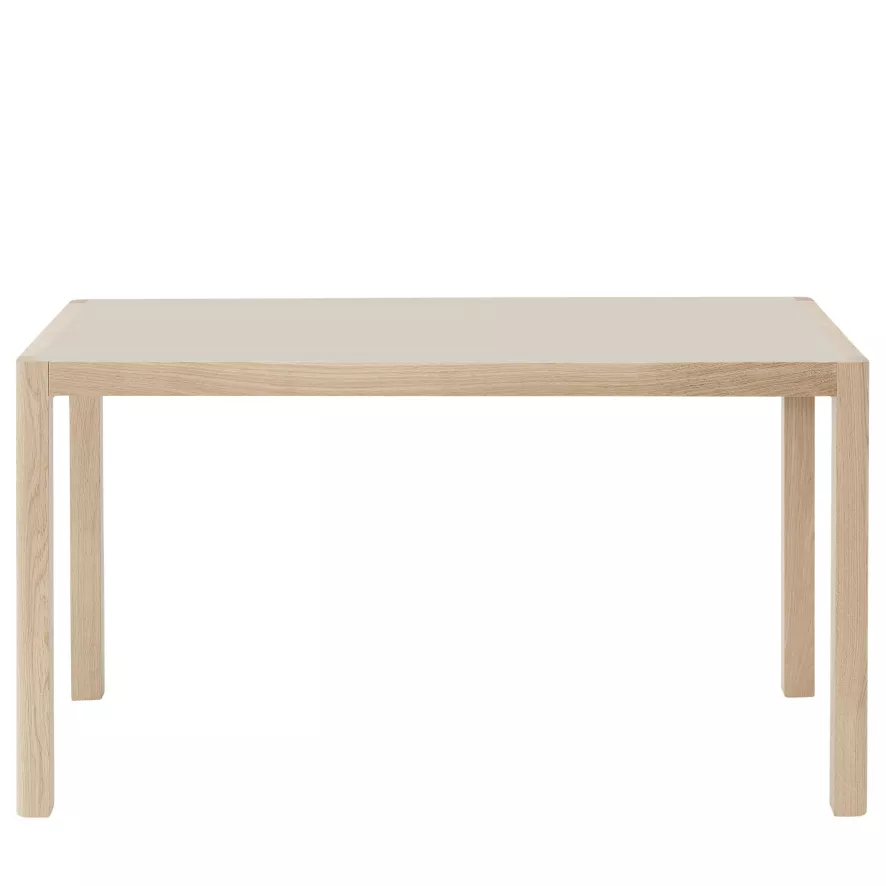 Het Workshop bureau 130×65 van Muuto heeft een breedte van 130 centimeter, een lengte van 65 centimeter en een hoogte van 73 centimeter. Deze tafel heeft een vierpotig onderstel van eikenhout en een tafelblad. Voor het tafelblad kun je kiezen uit een uitvoering van eikenhout of een uitvoering in linoleum. Het Workshop bureau 130×65 van Muuto is in verschillende uitvoeringen verkrijgbaar.